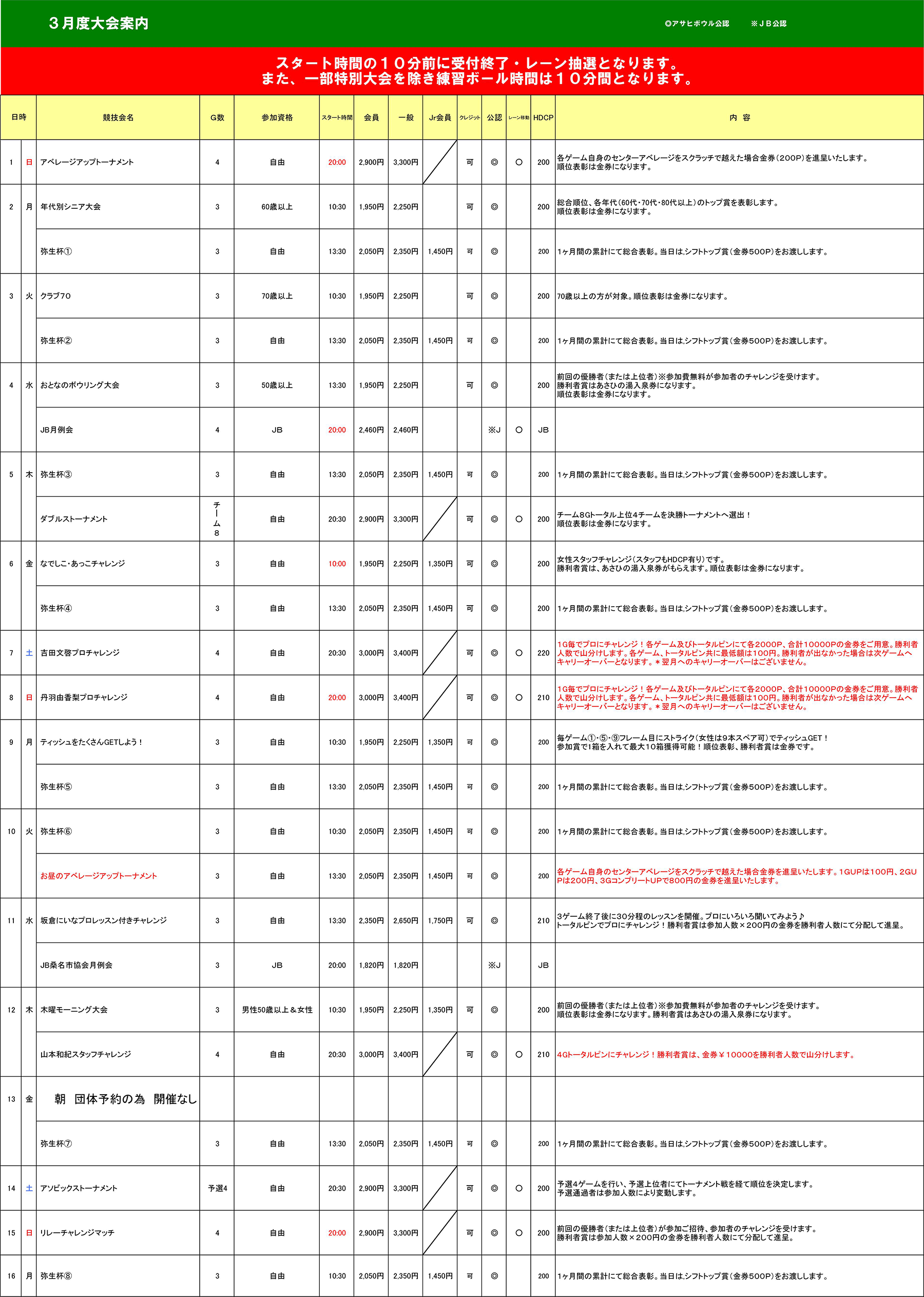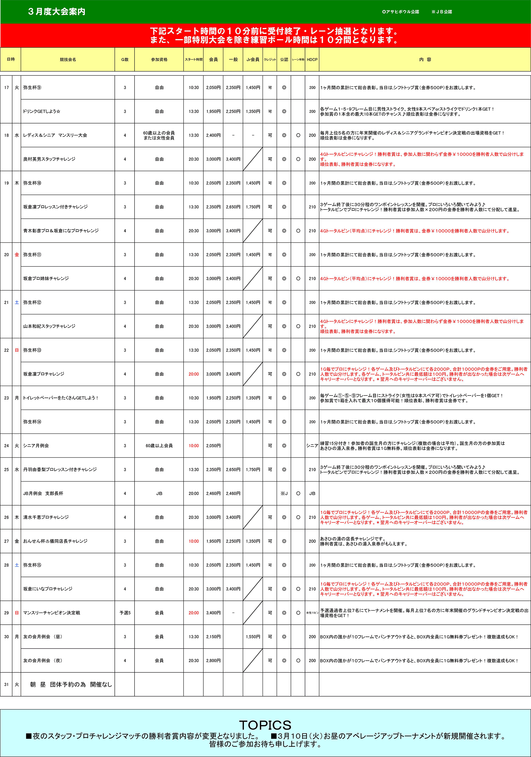 3月度 競技会日程表
