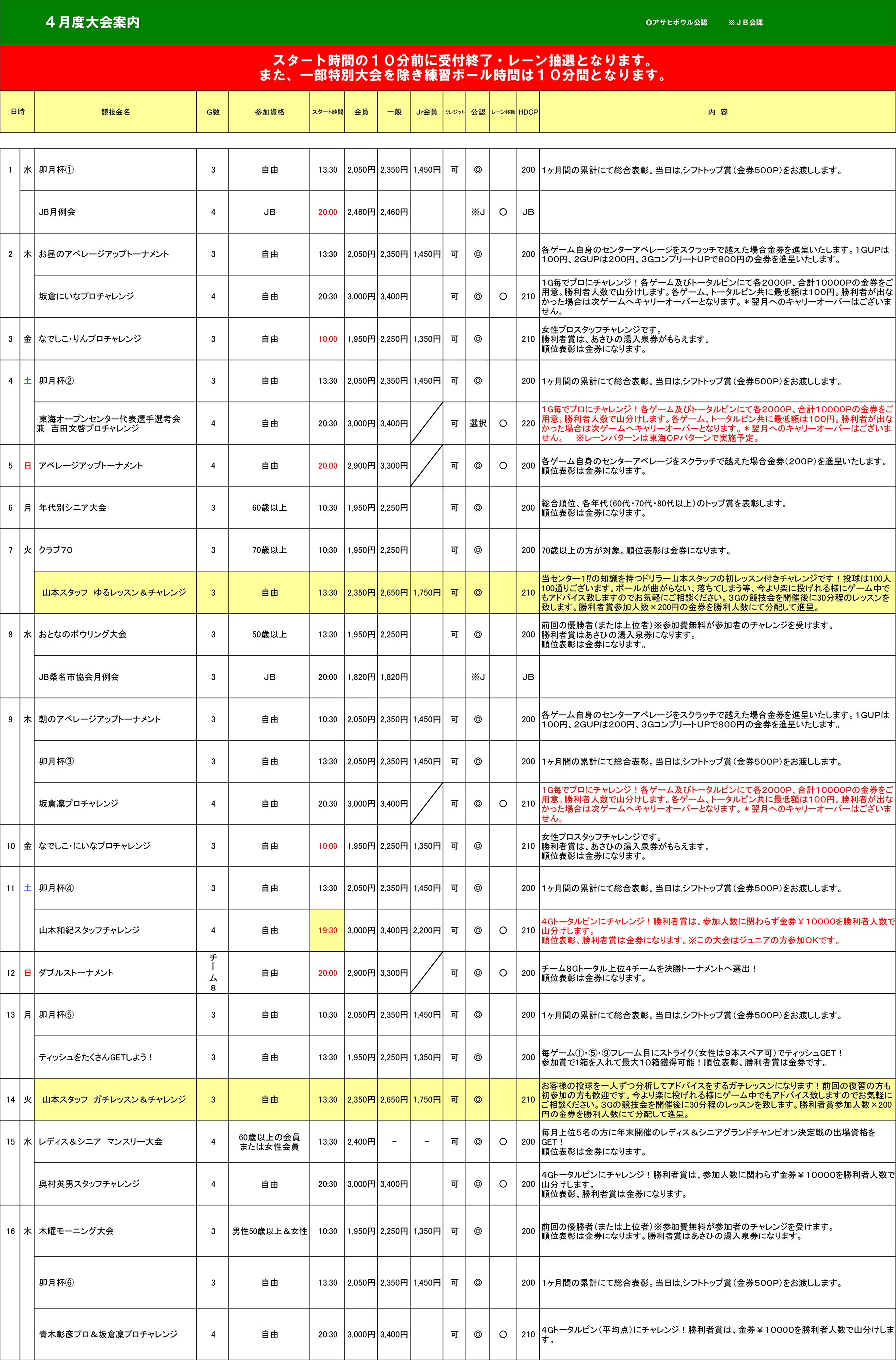 4月度 競技会日程表