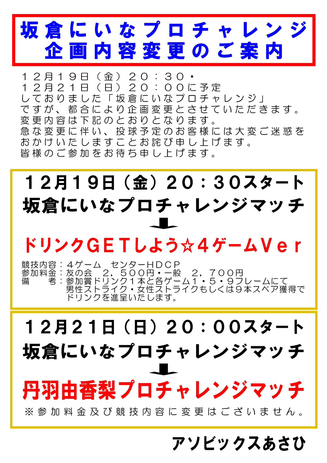 坂倉にいなプロチャレンジ企画内容変更のご案内