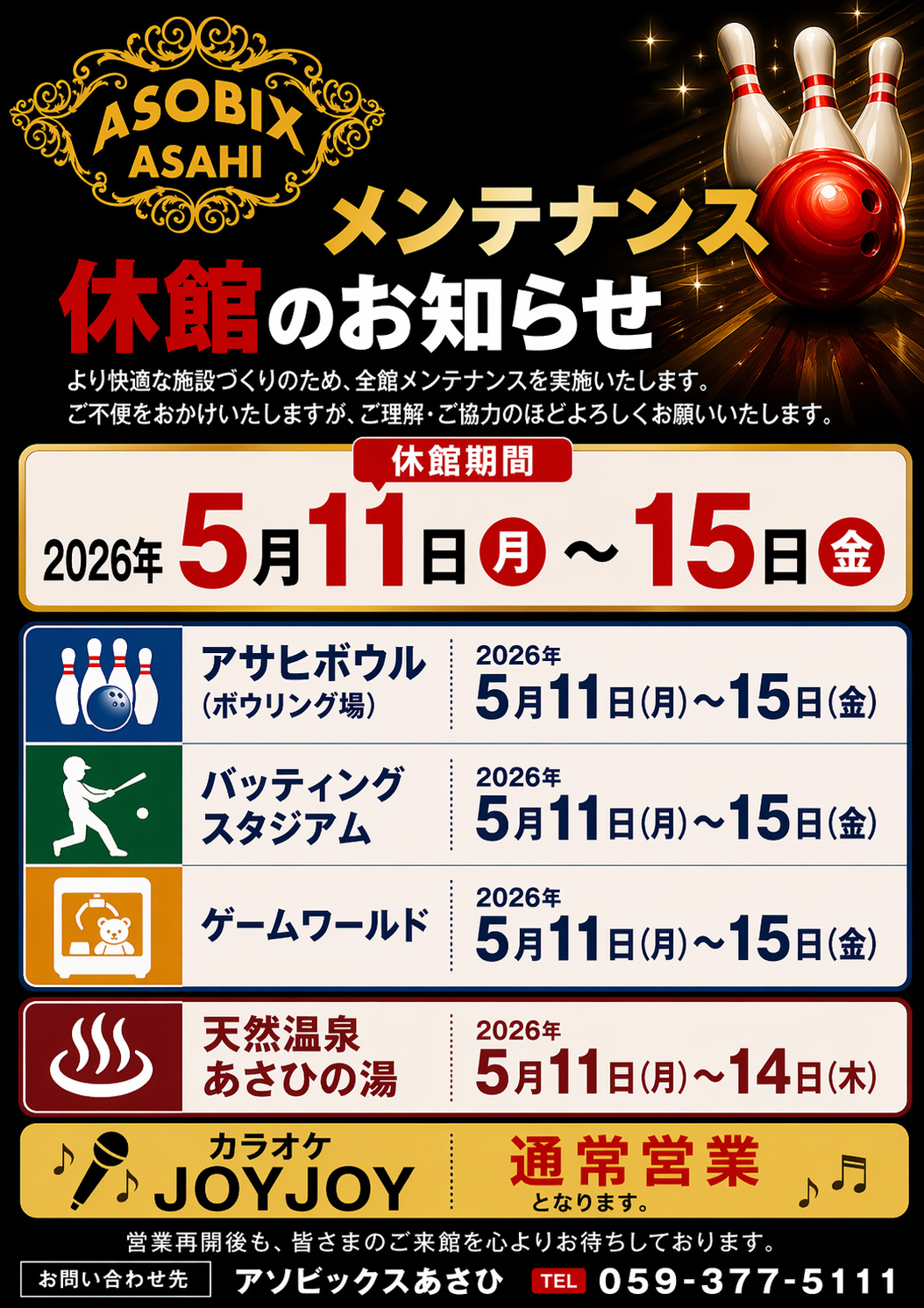 メンテナンス休館のお知らせ